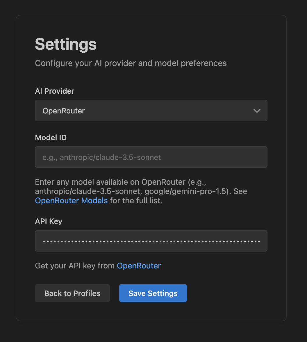 Speaking of growth, one of the most common feedback I've received is "Can you add support for model X?" And honestly, managing API keys for Claude, GPT, Gemini, and a dozen other providers was getting messy. So I added OpenRouter support.